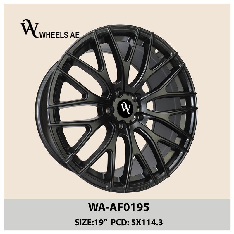 If you’re looking for a modern and assertive look, the aftermarket wheel WA-AF0195 delivers. Its multiple thin spokes create a race-inspired vibe while keeping the overall profile clean and luxurious. The gloss black finish matches any car color, from white and grey to red and blue.