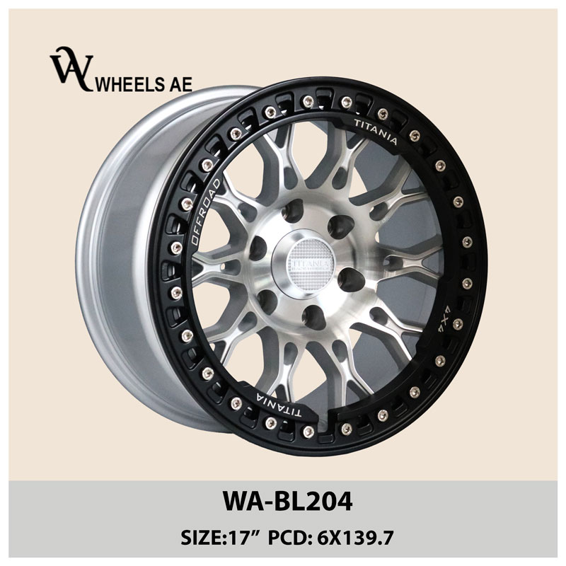 Upgrade your off-road beast with the beadlock wheel WA-BL204, a rugged and stylish wheel designed to dominate the harshest terrains across the UAE and beyond. Featuring a sleek silver face combined with a bold black lip, this 17-inch wheel strikes the perfect balance between visual aggression and heavy-duty performance.