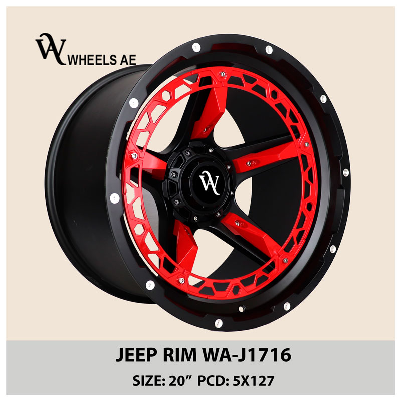 The Jeep Wheel WA-J1716 is one of the most unique red and black 20 inch alloy rims designed specifically for Jeep Wrangler and Gladiator. If you’re looking for a head-turning upgrade, this Jeep Wheel WA-J1716 gives your vehicle aggressive styling, road presence, and off-road reliability. Its dual-tone design is unlike anything on the road. Whether you drive in Dubai or hit the mountains, the Jeep Wheel WA-J1716 performs while making a visual impact. Jeep lovers in the UAE are choosing this bold option for shows, rides, and daily use. Install it once — and feel the difference.